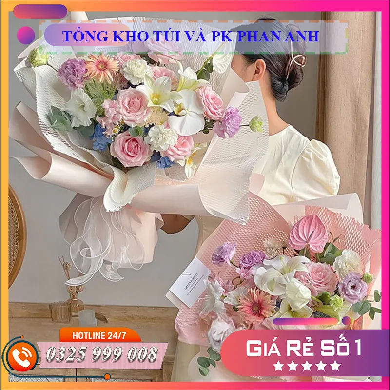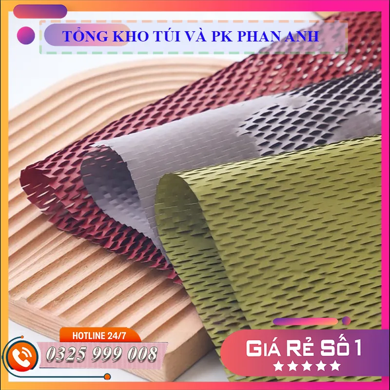 – Kết cấu độc đáo: Giấy gói hoa tổ ong có thiết kế dạng lưới tổ ong, tạo hiệu ứng 3D ấn tượng, giúp bó hoa hoặc quà tặng thêm phần nổi bật và sang trọng.