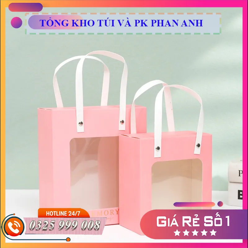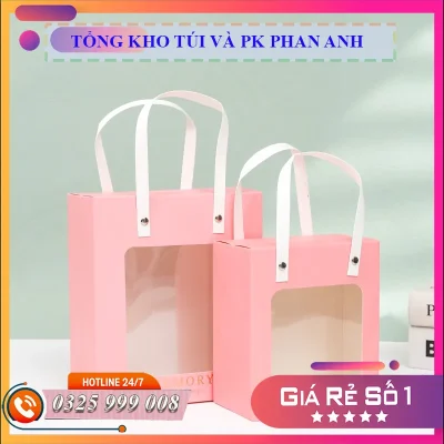 Hộp giấy cửa sổ quai xách nhiều màu đựng quà tặng