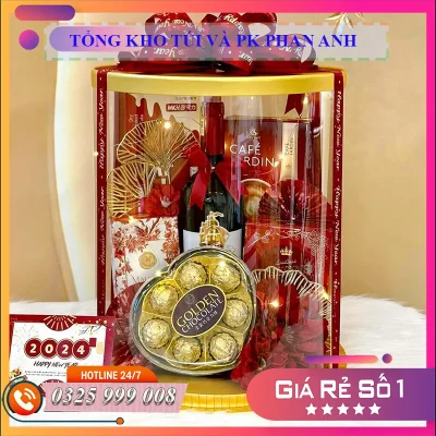 Hộp mica trụ tròn vàng đựng bánh/quà tặng